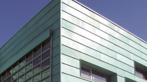 Realizzazione di rivestimento di facciata eseguito in aggraffatura angolare con pannelli in rame Teku Patina. Lavori di completamento dell’asse di penetrazione al porto della Spezia